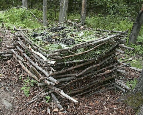 So the great thing about this design, is you can pretty much replicate it by just studying the picture above. Starting with one layer on the ground you can gradually build your walls by locking the sticks together to create that natural cage effect. It is recommended that the sticks are at least 4 feet long and as straight as possible. Grab your saw and go out into the woods to collect your sticks, and stack them close to your desired compst location for easy access.