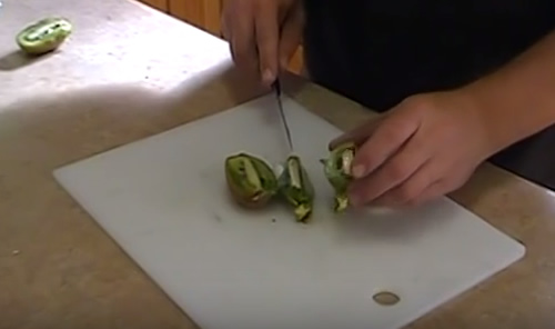 you scraping the seeds out to be able to get them from all four sides.