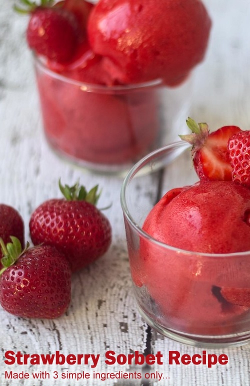A nice frozen dessert, anyone? It’s always good when you can whip up simple fresh healthy desserts, like this strawberry sorbet recipe. If you are still craving for more, feel free to check out this homemade fresh cranberry recipe, this blueberry ice cream recipe or this 3 ingredient chocolate mousse recipe recipe.